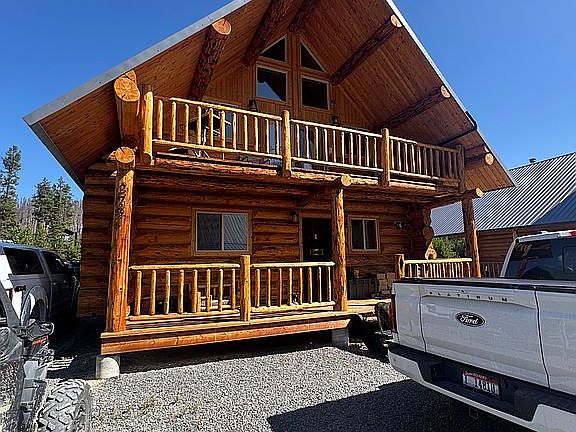 This home combines modern comfort with Idaho’s rugged charm — log cabin.