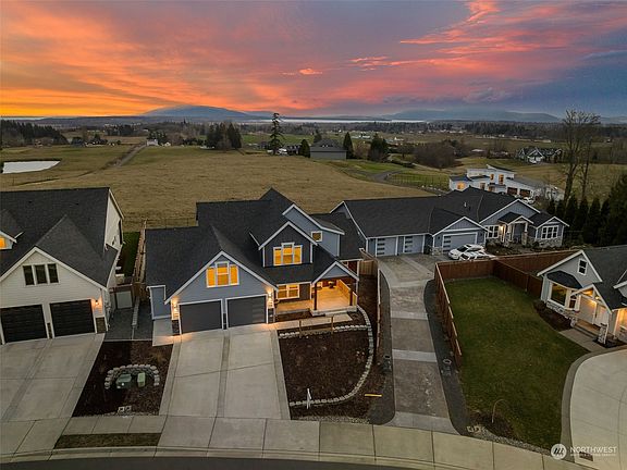 Beautiful Northwest Craftsman home with stunning views to the Southwest! Idyllically placed on the hilltop, most of the rooms feature expansive views overlooking Bellingham Bay, Hales Passage and Lummi Island. The sunsets are stunning! Main floor features a bright, open layout that's perfect for entertaining/relaxing. Elegant kitchen with stainless appliances & quartz countertops is adjacent to an amazing dining room/covered patio. Primary bedroom on main level w/walk in shower/soaker tub, walk in closet and private door to the backyard. 3 bedrooms upstairs & a fully finished bonus room above the oversized garage that is perfect for an office or playroom. Beautifully landscaped with blooming, colorful plants, raised beds & irrigation system