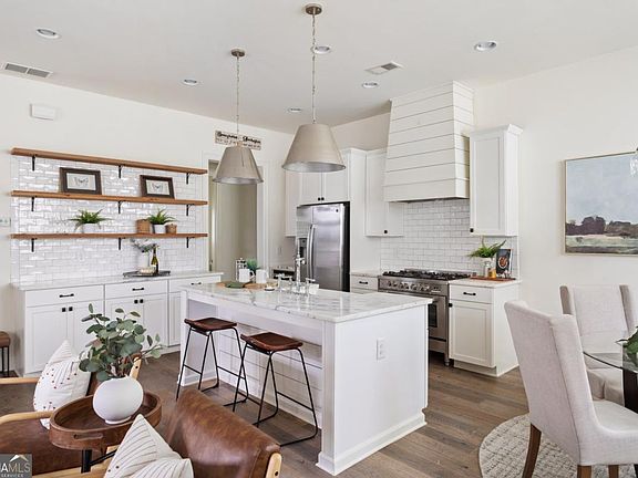 $15,000 in credits towards closing costs! Welcome to The Village at Williams Park! Designed by Southern Living's Julie Holloway and built by renowned McKinney Builders, this exquisite residence perfectly blends timeless charm with modern luxury. Located within walking distance of Smyrna Market Village and just a short drive to The Battery Atlanta and Truist Park, this home offers sophistication, convenience, and community living at its finest. Step inside to discover an open-concept design featuring a generous chef's kitchen with a large island, quartz countertops, stainless steel appliances, and a breakfast area overlooking the family room - ideal for entertaining or family gatherings. The spacious master suite boasts a soaking tub, separate shower, double vanity, and an oversized walk-in closet for true relaxation. Upstairs, a multi-purpose third level loft replaces the desired basement, providing flexible space for a media room, playroom, or home office. Additional bedrooms are well-appointed with custom details, and plantation shutters throughout enhance the home's elegance. Enjoy outdoor living with double porches, including a charming bed swing, perfect for morning coffee or evening relaxation. With luxury finishes, a versatile layout, and unmatched proximity to dining, shopping, and entertainment, this Smyrna gem balances modern comfort and classic Southern character.