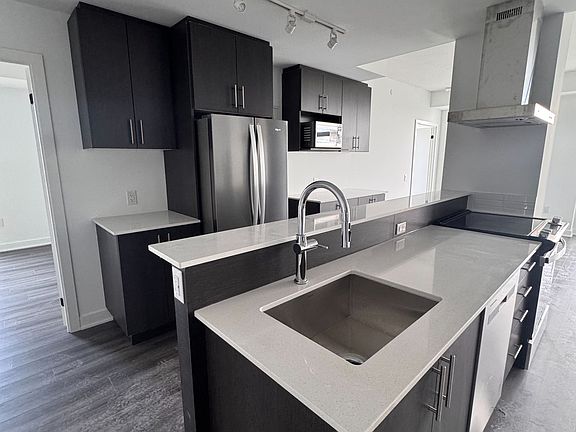 Be the first to call this brand new, never-lived-in 3-bedroom, 3-bathroom condo home, each bedroom includes its own private ensuite, offering exceptional comfort and privacy. This bright, thoughtfully designed unit features floor-to-ceiling windows with unobstructed lake views, a modern open-concept layout, and premium upgrades including a sleek kitchen island . Smart home features such as keyless entry, in-unit temperature control bring convenience to everyday living. You'll also enjoy ensuite laundry, one underground parking space, a private locker, and access to a residents-only fitness centre. Perfectly located in a quiet building just minutes from shopping, restaurants, cafes, grocery stores, and highway access, this condo blends luxury, technology, and practicality a rare leasing opportunity in a prime location.
