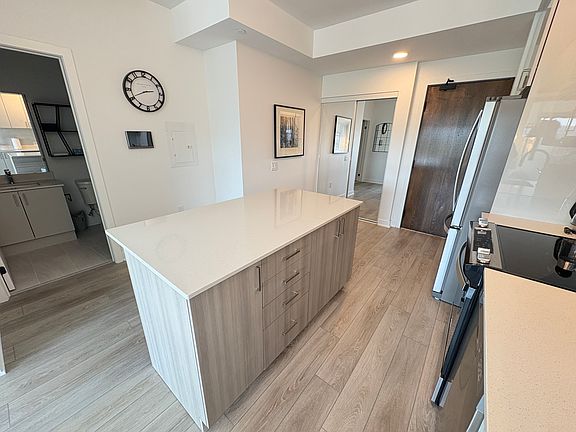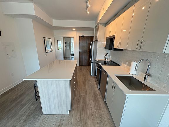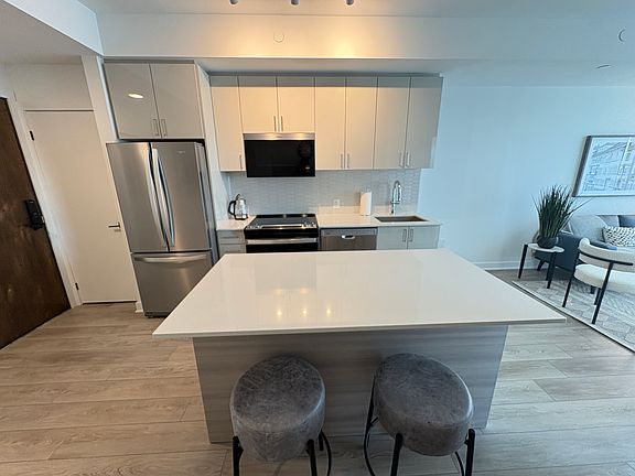 Welcome Home Fully Furnished Luxury Suite | Unit 518 at 2782 Barton St EastWelcome to Unit 518, located in the brand-new luxury condo development at 2782 Barton St. East. Perfectly situated just minutes from Confederation Park, the QEW, and an array of shops, restaurants, and amenities, this suite offers comfort, convenience, and style all in one.Be the first to live in this suitejust turn the key and move in! This fully furnished unit includes all utilities, high-speed internet, parking, and a storage locker. Outfitted with kitchen essentials, linens, and thoughtful touches throughout, everything you need is already here for a flat rate fee of $200/monthThe open-concept layout features a modern kitchen with a large island that adds both counter and cupboard space. Enjoy stainless steel appliances, sleek two-tone shaker-style cabinetry, and a layout designed for both everyday living and entertaining.The living area is bright and welcoming, with a large sliding patio door that fills the space with natural light and provides direct access to your private balconyoffering stunning views of the escarpment. The bedroom features floor-to-ceiling windows, a spacious double closet, and tranquil views.The 4-piece bathroom includes a soaker tub, a modern vanity with storage, and clean contemporary finishes. You'll also enjoy the convenience of in-suite laundry with your own washer and dryer.Building amenities include:- Outdoor amenity space with BBQ area perfect for relaxing or entertaining outdoors - Professionally equipped exercise room everything you need to stay active - Party room with full kitchen including a fridge, microwave, and dishwasher - Ample bicycle parking ideal for active and eco-friendly living This suite is the perfect blend of luxury, ease, and lifestyle. Just bring your suitcase and settle in. All of this for $1800 plus $200 flat rate, heat,hydro, water, internet, lcoker, parking and furnishings