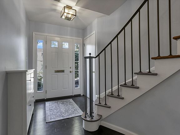 Up the elegant bridal staircase with its original hardwood floors, you'll find a full bathroom, a generous primary bedroom with its own half bath and large walk-in closet, along with two additional spacious bedrooms. Both secondary bedrooms boast refinished original hardwood flooring, and each bedroom is outfitted with large California closets, providing ample storage and organization.