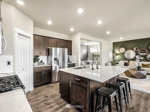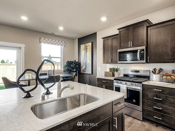 GORGEOUS DAYLIGHT BASEMENT Cambridge plan overlooks protected greenbelt area full of walking trails (former golf course cart paths!). Open concept great room w/ separate dining area, chef's kitchen & HUGE island allows you to enjoy cooking while spending time with loved ones. Upstairs, you'll have plenty of space with 4 bedrooms + LARGE bonus room for movie nights; Lower level offers direct backyard access & another BONUS room, the 5th bedroom, a full bathroom and oversized storage space! Beautiful finishes throughout home include slab quartz, high end wide plank laminate flooring, stainless gas appliances & much more! Glass door to deck off main level and patio off basement level. TAHOMA SCHOOLS with a late AUGUST completion!!!