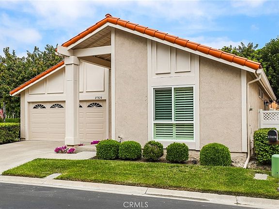 Pristine & Well Maintained! Beautiful Single Level Detached Home with a 2-car Attached Garage in the Exclusive Gated Community of Casta Del Sol (Age 55+). Perfect Tract Location through Gate One Main Entrance. This Popular 'Casa Violeta' Floor Plan Offers 2 Spacious Bedrooms and 2 Upgraded Bathrooms & Approximately 1295 SF (per Builder). Great Corner Location on a Small Cul-De-Sac Street Across from Open Space/Greenbelt with Beautiful Sunset Views. Large Living Room has Cathedral Ceilings & Remodeled Fireplace with Custom Mantle and Gas Logs ~ Versatile Separate Dining Room for Formal or Informal Dining ~ Shutters in Living Room, Master Bedroom and Dining Room, Vertical Blinds on both Slider Doors ~ Updated Kitchen has Quartz Counters & Full Stone Back Splash. Newer Cabinets with Self-Closing Doors & Drawers and Buit-in Desk~ Smooth Ceilings throughout ~ Extensive Use of 18" Tile Flooring Throughout ~ There are 2 Patios - One in the Back + a Large Private Fenced-In Side Patio w/upgraded Pavers and Newer Vinyl Fences, front and back. Additional Improvements include replacing Windows and both sliding Glass doors with Milgard Vinyle Dual Pane Windows, Outside, and Inside Repainted, Installed Rain Gutters, Upgraded all Exterior Lighting, Replacing original Ductwork in the attic and access panel, Dining Room, and Ceiling Lights in the Hallway, Mirror Closet Doors in Bedrooms, Several Newer Appliances, Garage has workbench and cabinets ..... and No Mello Roos! The Owner has kept this Home in tip-top Condition along with an Annual contract for the Maintenance and upkeep of heating and Air Conditioning Systems. The community spans 484 acres of mature trees and picturesque hills, providing a tranquil setting for residents. The association offers an array of amenities, including two recreation centers with a pool, spa, clubhouse, tennis courts, gym, paddle tennis, shuffleboard courts, billiards, and more. Trash pickup and exterior painting are also included in the association's services.