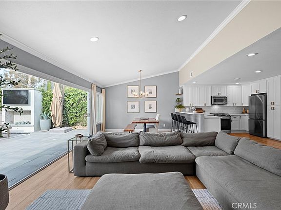 TAKE ONE LOOK AT THAT YARD, AND YOU WILL DO WHAT EVERYONE DOES. YOU WILL ASK YOURSELF, 'WHY"? You will believe they spent about $200,000 on their backyard paradise consisting of artificial turf, a stack stone wall, the concrete pavers, the luxurious pool with 3 waterfalls, the 10'X10" spa, the SMOKER and separate bar-b-q ($8.6K), the free standing outdoor fireplace with flatscreen TV and the outdoor refrigerator. What helps make this home so special is the easy access to this fantasy rear yard through the Win-Dor Bi-Folding Doors ($21K installed) that make up nearly the entire LR and DR walls facing the rear yard. Look at the photos and accompanying 3D Matterport Virtual Tour which are neither a trick nor an illusion. That wall just kind of disappears. Talk about "Open Concept!" To answer the question, "We thought this was going to be our forever home and we wanted it to be special and perfect." They may have spent more on the inside of the house than on the outside. As with many homes on the market, this single story charmer also has raised panel doors, Shaker Style soft close cabinets/drawers with dovetail joint construction, textured ceilings, vinyl windows/sliders, door/window casings, crown molding, oversized baseboards, wide-blade Plantation Shutters, Decor plugs/switches, recessed lighting, a pulldown attic ladder in the garage, a 2 year old HVAC system, remodeled kitchen/baths and Luxury Vinyl Flooring. This home is in a highly desired neighborhood in the heart of Mission Viejo, near schools/shopping, with easy access to transportation AND has a panoramic view overlooking some of the nearby 5+ mile long Oso Creek Trail. I hear the sunsets are amazing, and if you do not know about The Trail with its nature walk opportunity, it's maze, the Peace Obelisk, the Celebration Garden, the creek, the wildlife and the bridges, you should Google it. Oh, and if your concern is anyone falling into the to pool (who's isn't concerned about that?), deploy the $2K "Catch-A-Kid" safety net. Lake membership is part of the deal: swimming, boating, concerts, fireworks, summer movies for the kids and "Taste of the Lake" for the adults. The city itself is a prize. Parks all over the place, shopping at the MV Mall, the proximity of Mission Hospital and it's Trauma Center. Traffic permitting, MV is less than an hour away from either SD or LA, 20 minutes to John Wayne Airport and 20 to 30 minutes from world class beaches up and down the coast. This is an entertainer's dream!