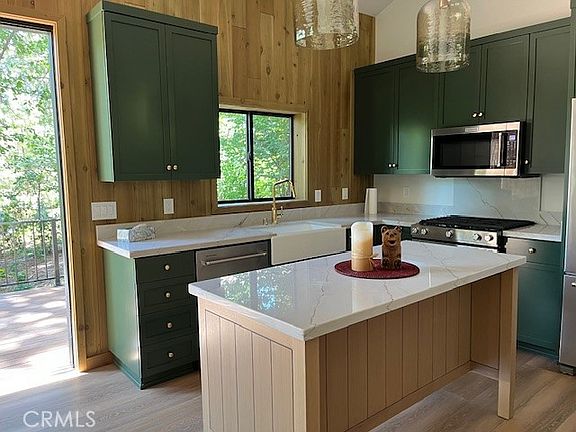 SELLER IS MOTIVATED! 100K PRICE REDUCTION! What a beautiful Meadow Bay North townhome! TOTALLY renovated with quality craftsmanship and mountain charm with original western cedar paneling. With Lake rights and a lake view, this 4 bedroom, 3 bath home is just perfect and so close to the private sandy beach. The open floor plan is the one that MBN buyers wait for. The entire main level can provide for single level living that features a beautiful kitchen with custom cabinetry, quartz counter top, farmhouse sink and stainless steel appliances. Also on the main level is a spacious bedroom, a beautifully remodeled bath, dining area and living room. The living room exudes charm with lots of windows, luxury vinyl flooring and corner rock fireplace. Step out through an oversized full length sliding pocket door to a huge trex wraparound deck. The mid level features 2 bedrooms and a bathroom. Half a flight up is the primary bedroom suite with vaulted beamed ceiling. Close and ample parking for you and all your guests. MEADOW BAY MULTIPLE DOCK 1,SLIP 11 IS AVAILABLE FOR EXTRA and is just a short stroll from the home. Buyer will have first right of refusal. Short term rentals are permitted with a San Bernardino county permit, but must be at least a 6-night minimum. HOA fee includes trash and snow removal, and maintenance of roofs, siding and decks. This home is just too good to miss. Call for a showing.