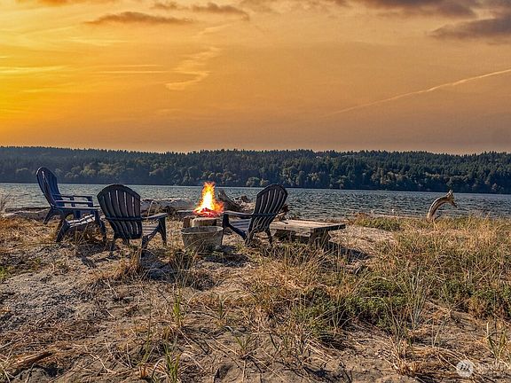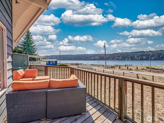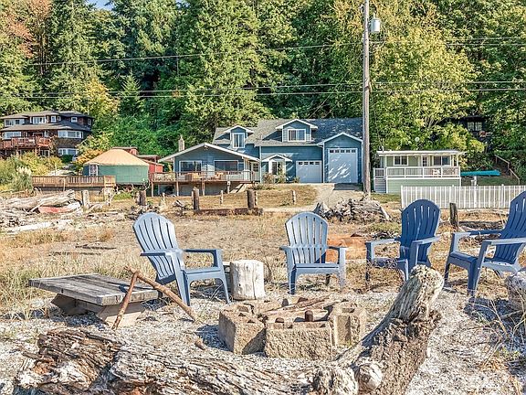 Fantastic opportunity to own a substantial home on 75’ low-bank waterfront with tidelands on a sandy, west-facing beach for less than $1 million! This classic 2,000 sq. ft. house has many modern elements—a new $70,000 septic system, two-car attached garage/ shop, 3 bedrooms, 1.75 baths, and stylish updates throughout. From the deck, look over dune grass to the outer harbor, a campfire circle on the water’s edge, seals, otters, and other sea life, as well as Tacoma city lights. Enjoy the quiet of a small community on a dead-end road; experience watching the sailboats rounding the Manzanita mark, endless beach combing, paddle boarding, kayaking—the best year around entertainment ever!