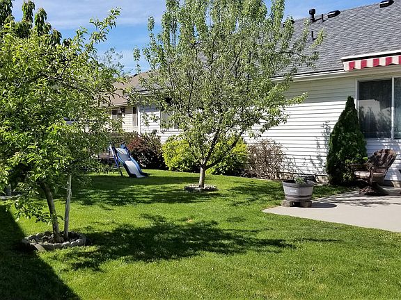 1,266 SF 2002 rancher with 14'x16' shop (with power) and 10'x12' storage shed. Gas forced air heat and A/C! Convenient location on nicely landscaped 0.18 ac lot featuring 3 fruit trees and raised garden area. Fully fenced with sprinkler system front and back. Sunsetter awning shades large back patio. Over-sized 2 car garage with heater, lots of storage, and wheelchair ramp. 2018: new roof on all 3 buildings plus new furnace, new laminate flooring and refaced kitchen cabinets. Too good to pass up . . . schedule your showing TODAY!