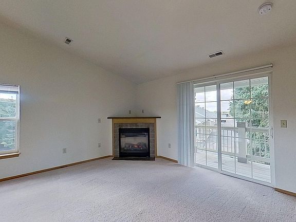 This NON-SMOKING unit includes one car attached garage, private entrance, full size washer and dryer in the unit, appliances, gas fireplace, gas furnace, central air, & private balcony.