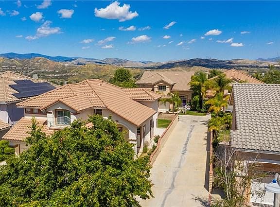 Santa Clarita home on a flag lot with spectacular views of the Santa Clarita Valley. Come through the front doors and admire the cathedral ceilings. Bask a little in the natural light. The 18" tile flooring on the diagonal throughout the entire first floor of the home is beautiful. The formal living room and dining room overlook the Santa Clarita Valley.Freshly remodeled, the kitchen features Starry Night granite countertops and travertine backsplash. There's plenty of storage and counter space, an oversized center island, double oven and 5-burner cooktop. The new pantry pops with a decorative glass door! The laundry room has its own charm and functionality with overhead cabinets and a utility sink.Downstairs there is a newly remodeled full bathroom plus office space that can be converted to a full downstairs bedroom.Go upstairs and take in the master bedroom ensuite and separate sitting room with gas or wood burning fireplace. Imagine cozying up by the fireplace... The masterbath also features dual sink countertops, separate tub and roomy shower.There are two additional bedrooms upstairs with a Jack And Jill full bathroom.Outside is an outdoor patio with stamped concrete, a built-in BBQ, griddle, party refrigerator and a built-in gas or wood burning fireplace. An entertainer's dream! The lot extends beyond the fencing with sprinkler system throughout the lot. Fruit trees? Yes! Peach, lemon and apricot that are starting to bare fruit.