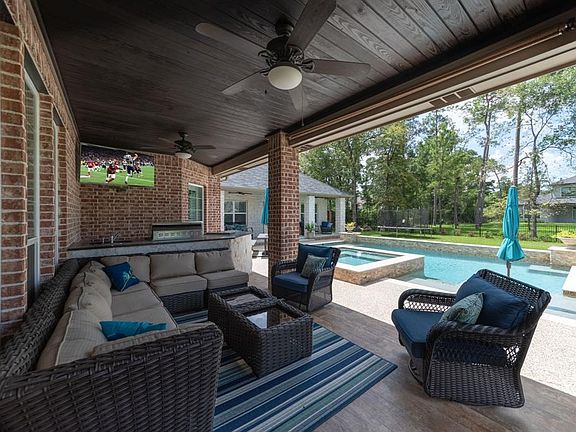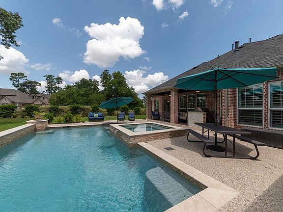 Gorgeous estate in THE RESERVE of Benders Landing Estates w/Pool, Spa, & Guest House! Guest house has additional 621 square feet (not included in listing SF). It has own private garage, Den, kitchen, laundry, bedroom & full Bath! Perfect multi-generational set-up or live-in nanny. Sweeping outdoor living space w/outdoor kitchen. Main home is breath-taking w/soaring ceilings, interior brick/stone accents, & plenty natural light. Spacious chef's kitchen includes stainless appliances 5 burner gas stove top, reverse osmosis water filtration system & more! Whole house water softener & outdoor security system. Sneak away to your private mater retreat to soak in the whirlpool tub! This home has it all and is priced to sell! Located near The Woodlands & IAH, it's only 35 min to downtown Houston. Member-only access to the clubhouse, fitness center, community pool/splash pad, sports park included! Zoned to incredible Conroe ISD schools (including the new Grand Oaks High School!). MUST-SEE!