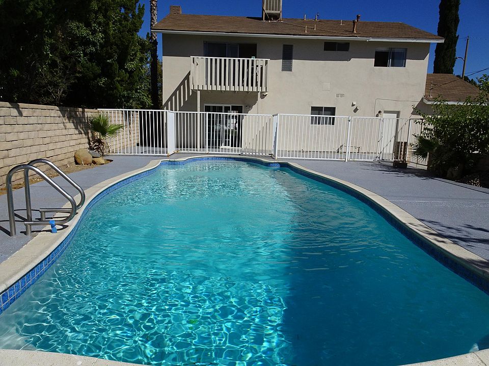27839 Larkmain Drive, Santa Clarita, CA 91350 Available now! 5 BR, 3 BA, 2-story with a new swimming pool. The house has been completely renovated from top to bottom, inside and outside. There's new hardwood flooring throughout the house. Kitchen and bathrooms have new tiles. Granite kitchen counters. New stove, dishwasher. New cabinets. New windows and blinds throughout the house. New bathroom vanities. Bathrooms with new sink and toilet. Mirrored closet doors. Second floor has a balcony overlooking the pool. The pool is fenced all around. Sparkling blue water refreshingly cool on a hot day. The backyard is huge with concrete patio. Around the backyard are about two dozen ficus trees newly planted. The driveway in the front has new concrete and planters on the side. Fresh green lawns on the front and side of the house.