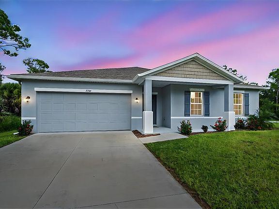 One or more photo(s) has been virtually staged. Step into modern comfort and design with this never lived in four bedroom, two bathroom home that is packed with upgrades! Situated on an oversized corner lot, this property provides extra space and wonderful privacy, surrounded by trees. Located in North Port, Florida, a blooming community where you’ll enjoy the benefits of a thriving area without the restrictions of an HOA or CDD, with the addition of not being in a flood zone. To top it all off, this home is offered at a great price, making it an incredible value for a brand new build! Inside, you’ll find a bright, open floor plan with tile flooring throughout and all appliances included. Smart home capabilities bring convenience to your fingertips, while upgrades such as a whole home water softener system add long term value and comfort. The spacious living and dining areas flow into a screened in lanai, perfect for relaxing or entertaining while overlooking the natural setting. The split floor plan ensures privacy for the primary suite, while the additional bedrooms provide flexible space for family, guests, or a home office. The garage has also been upgraded with a durable epoxy coating for both style and functionality. The location adds even more appeal. Downtown Wellen Park is just 14 miles away, offering dining, live music, markets, and family friendly events. Everyday shopping and dining are only 6.1 miles away at Coco Plum Plaza. Sports enthusiasts will appreciate being just 15 miles from the Atlanta Braves Spring Training Complex. For relaxation, the world famous Warm Mineral Springs is less than 10 miles away. With I-75 under 4 miles from your doorstep, commuting and exploring the Gulf Coast couldn’t be easier. This home blends extra space, privacy, modern upgrades, and an unbeatable value, all in a rapidly growing and vibrant community. Don't miss this truly special opportunity to move right into a brand new home. Skip the wait and start living the lifestyle you’ve been dreaming of!