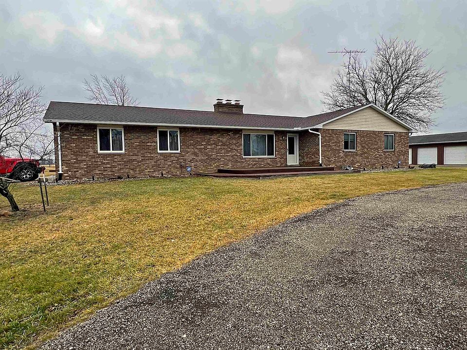 Your dream home awaits! This beautiful brick ranch sits on almost 5 acres and features EVERYTHING you've been looking for. The three outbuildings (66x24/heated, 88x30 plus lean to, and 20x40 with coverage for your RV) feature all the storage you could ever need. The HUGE yard, pond, volleyball court, patio, and hot tub make this property feel more like an up north getaway than a homestead. Inside you'll find a cozy living room with gas fireplace, updated kitchen, formal dining room, and 3 large bedrooms. The partially finished basement is perfect for your man cave or when the kids just want their own space. And it features another gas fireplace, laundry with sink, and 2 additional storage rooms. The septic was replaced just 2 months ago and passed all health dept requirements. Never worry about power outages thanks to the whole house Generac backup system. Call for your private showing today!