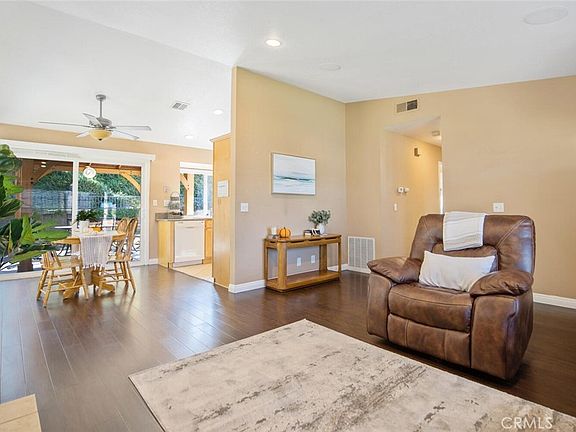 Charming 2 bed 2 bath Single Story home nestled in the highly sought after Mountain View West Community in Saugus! The large front lawn and brick patio sitting area is a great place to enjoy your morning coffee. Once you enter this open floor plan you will find ceiling fans in every room, neutral tile and dark wood laminate floors in living areas, neutral paint throughout and a spacious, private back yard with a covered patio, two grapefruit trees, a lemon tree and plenty of room for kids and pets play! Your light and bright dine-in kitchen adjoins the cozy family room complete with fireplace and beautiful mantle. The master bedroom has its own private entrance to the shaded backyard and the large mirrored wardrobe closet provides ample storage space! The indoor laundry room conveniently leads to the spacious 2 car garage. With No HOA or Mello Roos, nearby fantastic schools, shops, restaurants and Central Park, this tranquil space is the perfect place to call home for years to come!