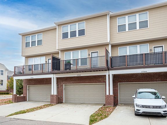 This well-maintained Liberty Park condo offers a comfortable and stylish living space. The main level features a sunny kitchen with hardwood floors, granite countertops, stainless steel appliances (including a gas range), and a tile backsplash. The living room boasts modern lighting and a stylish faux stone wall. A private balcony, perfect for morning coffee or evening relaxation, and a convenient powder room complete this level. Upstairs, you'll find two primary suites, each with a walk-in closet. Choose between a spacious shower or a relaxing tub, both with granite countertops. The lower level provides access to the two-car garage with side-by-side parking, a laundry room, a mud room, and ample storage. Nest thermostat, Ring doorbell, and a hose bib in the garage for convenience. Enjoy the community pool and playground just a short walk away. Nearby bike and hiking trails at Lakeshore offer outdoor recreation opportunities. Conveniently located near 12 Oaks, I-696, I-275, I-96, and numerous offices and restaurants. Situated in the desirable Novi School District and Parkview Elementary attendance area. Photos from prior to current tenant.