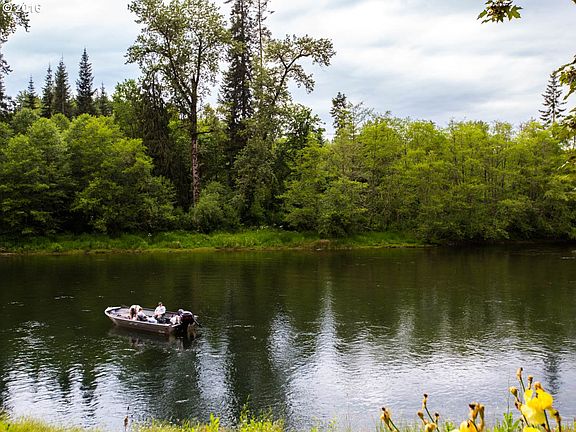 190' of Clackamas River frontage with a great Salmon/Steelhead fishing hole. Walls of windows capture the view! Hardwood entry leads to huge family room with Vaulted ceilings as well as Kitchen & Din Rm. Open beams & skylights. Master has jetted tub, sitting area, huge Walk in closet & deck overlooking river! 3rd bedroom being used an office. FEMA ZONE X=1% 500 YR FLOOD PLAN New Roof, newly painted, 47 HP CAT Generator FIBER Internet