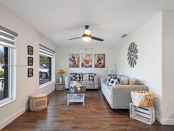 Fully remodeled home spacious enough for an extended family! This fantastic home has an expansive floor plan boasting two large living areas with wood grain porcelain tile throughout. Solid wood kitchen cabinets, granite countertops, stainless double sink, giant walk-in pantry. Screened-in porch, 34 solar panels, Class 5 hurricane accordion shutters and 3 extra large hurricane impact front windows. Brand New Appliances installed in 2021. 10x10 shed, 6 ft wood fencing, large spacious backyard with fruit trees. Extra room in the Garage with full bathroom & washer/dryer area, Enjoy this gem of a home in a well-established quiet and safe neighborhood. This is a must see property !!!