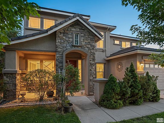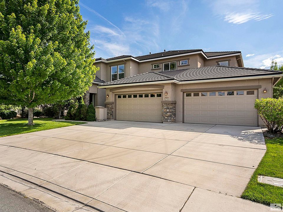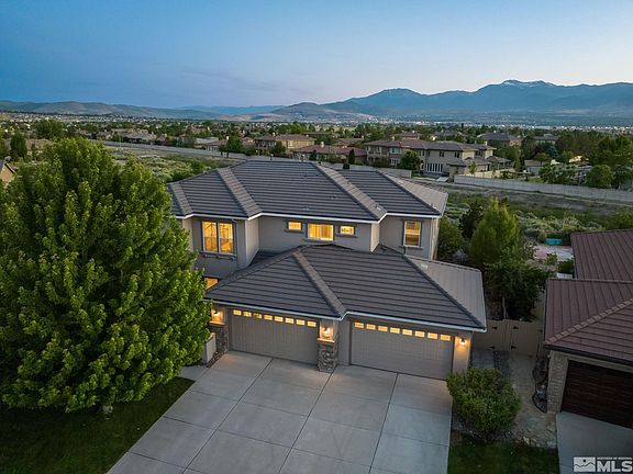 Seller is VERY motivated! New price is now below fair market value. Seller concessions will be strongly considered with a good offer. Perfect family home with beautiful, unfettered views of Mt. Rose in the Golden Hills neighborhood of Damonte Ranch! The floor plan flows seamlessly whether it's for entertaining or a large family, there is a spacious formal living area, formal dining, breakfast nook off the kitchen and large family room with a gas log fireplace., The kitchen has a new Samsung fridge and gas cook top with Fotile automated hood, double ovens, island with a 2nd sink, full pantry, granite counter tops and under-cabinet lighting. The master bedroom is large, has high ceilings, a walk-out private deck with epic mountain views, large walk-in and secondary closet. There is 1 bedroom and full bathroom on the main floor and the loft and remaining rooms/baths are upstairs. The finished, oversized 4 car garage should meet all your needs, along with epoxy flooring and a Tesla charger to stay with the home. The backyard is an oasis of fruit trees and privacy, and a covered stamped concrete patio, large storage shed and hot tub. Other notable features include: large laundry room with sink and cabinets, new water heater, Nest programmable thermostat, Ring system at the front door, new blinds throughout, mountain views from both guest bedrooms and dual zoned AC units.