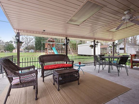 Did NOT Flood and in Flood zone X! Updated, neat and clean with so many nice features! Kitchen has been updated with cabinet doors/drawers and light fixtures. Both bathrooms have been completely updated with new flooring, toilet, vanity and tub! ALL light fixtures updated through out house. Master bathroom includes jetted, soaking tub! All bedrooms have large walk-in closets. Garage is also heated and cooled! So many extra features including, wired for security system, RV Parking and plug-in, Boat Cover building in rear yard, additional storage building in back yard, large fenced yard for children and pets. The covered patio is complete with Cable TV mount, and ceiling fan!