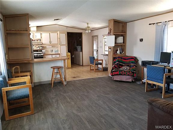 Spacious single-wide! Over 1,200 square feet = tons of room! Wood stove adds nice warmth and ambiance in the winter months without the increased power bill! Enclosed patio area. Convenient location, close in to town on a fully fenced double lot. There are mature shade trees on the West side of the home to add some relief from those summer temps. RV gate allows for additional parking for those out of town guests. This home is being sold with the lot to the West, parcel #324-14-718. Seller will consider all offers.