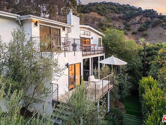 Introducing a meticulously renovated home with breathtaking canyon views, tucked away on a peaceful, tree-lined street in the hills above Laurel Canyon. Step inside to an airy, open-concept layout flooded with natural light. The gourmet kitchen features premium Sub-Zero and Wolf appliances, gleaming marble countertops, and custom cabinetry. The spacious living and dining areas extend seamlessly to a private Ipe wood deck, complete with a built-in bar, ideal for outdoor dining. The primary suite offers a cozy fireplace, a private balcony with canyon views, and a luxurious spa-like bathroom featuring dual vanities and a wet room with a soaking tub and shower. The second bedroom also includes its own private balcony and a spa-inspired bathroom. The third bedroom is on the smaller side and best suited as an office/nursery. Outside, the lower yard provides a lush, grassy area perfect for entertaining amidst serene landscaping. Additional amenities include built-in desks with storage, a LifeSource whole-house water filtration system, a security system with in-wall iPad control, Sonos surround sound, and more. Just minutes from the Sunset Strip and Ventura Blvd, this home epitomizes modern California living.