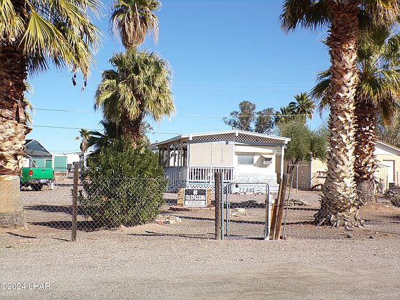 IN YOUR PRICE RANGE! In town, 3 lots 75x125, fenced lot with orange & lemon fruit trees, palm trees and mature desert landscaping. An older mobile home that is a vintage Viking. 1 bed 1 bath with canopy over trailer to protect from elements. Water fitration system for home. Ac wall unit for cooling. Portable electric heater for heat. Nice large front covered porch to relax on, two sheds in back 1 for storage & a wash / utility room with a washer included in sale. A detached 10 x 15 carport to shelter vehicle. Laundry line for clothes drying. Also a manual & auto watering system. This lot with home has tons of potential to add your own personal touches... SALE TO BE AS-IS