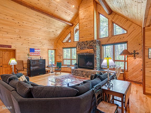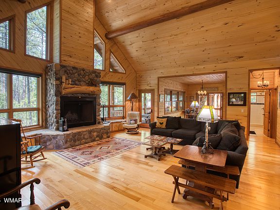 White Mountain Summer Homes. Rare opportunity to own a beautiful home w/ adjoining cabin providing private enjoinment for family/fiends on 1.15 acres, Lock and leave in the most desirable guard gated subdivision in the White Mountains. 4 Bedroom, 4 bath plus loft, total 2994 square feet. Main house built in 2006 - Fabulous wood flooring, vaulted ceilings, view windows. fireplace. in great room. 2 car garage. Kitchen w/ pantry, breakfast bar island,. Master bedroom is spacious w/ dual vanity, walk-in closet. 2nd bedroom in main house w/ en-suite bath. Formal dining. Wrap around deck (2025) w/ built in bbq. 2 car attached garage. Guest quarters w/ 2 Bedroom/ 2 Bath, plus loft sleeping quarters, sun room and adorable kitchen w/ private entrance. Roof replaced in 2025. Quality and taste.