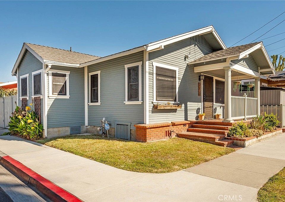 This alluring California Bungalow is rich in original character and style, with 21st Century upgrades to provide enhanced comfort. The property is sited on a uniquely quiet street among other charming Bungalow homes, and is located a short walk to Orizaba Park, Common Room Roasters, and the famed Joe Jost’s tavern. The architectural details in this home have been well maintained and include original built-ins, molding and trim, fold out desk, and breakfast nook with fold out kitchen table and seating. Upgrades include zoned HVAC systems in the living room and bedrooms, an electric fireplace, remodeled kitchen with quartz countertops and modern appliances, ceiling fans, laundry hookups, and durable designer flooring. The outdoor spaces on the property are quite generous due to the corner location, and they set up well for entertaining. For those who appreciate architectural character, at an affordable price, this home is a terrific opportunity.