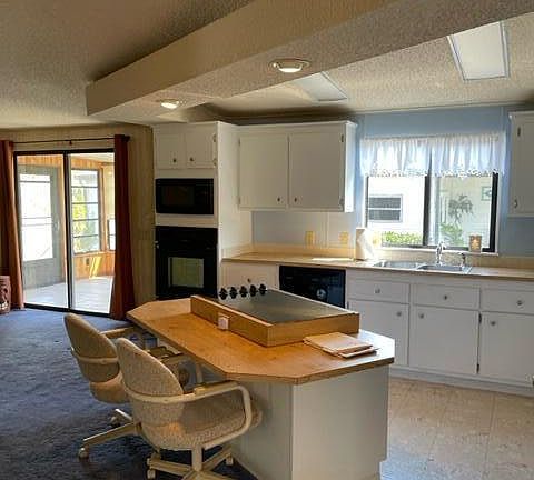 Lovely 55+ Community living on your own lot . Double wide manufactured home featuring open floor plan with large living, dining, family room and kitchen areas, 2 bedrooms , 2 full baths , laundry, sun room with a super bonus of 2 sheds for tones of storage one shed is attached and the other 12 x 20 detached shed with ramp Newer roof and AC. Partially furnished Priced for quick sale.