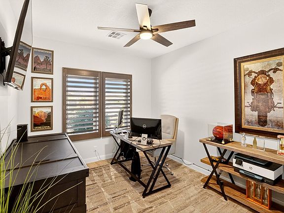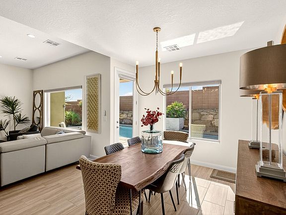 Modern Single-Level Oasis in Divario Canyon-St. George, Utah. Welcome to your desert retreat! This stunning 3-bedroom 2 full bath single level home in Divario Canyon offers the perfect blend of comfort, style, & resort style living. Perched just above the Sunbrook Golf Course, you'll enjoy breathtaking red rock views & endless sunshine from your backyard paradise. Relax & entertain by the sparkling pool with waterfall & spa, all surrounded by a fully fenced yard with elegant iron gates & digital locks for security & peace of mind. Inside, the home boasts recent upgrades throughout-including GE Cafe' kitchen appliances, quartz countertops, designer lighting & new carpet. The three car garage features epoxy flooring & overhead storage, offering plenty of room for vehicles & gear Whether you're savoring the mountain views, teeing off just minutes away or lounging by the pool, this home truly embodies the best of St. George.