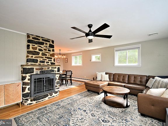 Fabulous Stone Ranch Packed with Upgrades! This home has it all—3 spacious bedrooms, 1.2 baths, and a layout designed for everyday living and entertaining. Step inside to an open floor plan featuring hardwood floors throughout the living room, dining room, hall, and bedrooms, plus a welcoming living room with a wood-burning stone fireplace, a dining area, and an updated kitchen. Just a few steps down, the vaulted family room showcases sweeping views of the backyard and opens to a large deck—the perfect spot to gather with friends and family. Down the hall, you’ll find a pantry, full bath, two bedrooms, and a primary bedroom with its own half bath. The walkout lower level expands your living space even further with a finished area that includes a second fireplace, a half bath, laundry, workshop, and direct access to the oversized 2-car garage. Major updates give this home extra appeal: refinished hardwood floors and roof, gutters, and central AC all installed in 2021. Attic storage and a backyard shed add even more function. UV treatment and softener were installed in 2020. No monthly water bill!!!! Wonderful location close to shopping, dining, parks, and Woodland Elementary. Set on 1.04 acres in Lower Providence Township, this stone ranch is the total package!