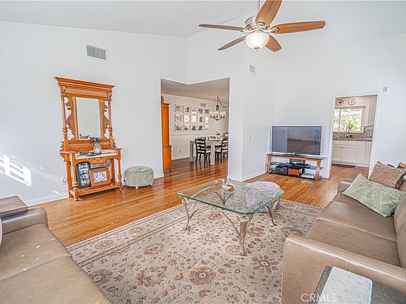 The kitchen was tastefully upgraded with granite countertops and cabinetry and opens to an inviting living space with vaulted ceilings and abundant natural light from well-placed windows and sliders. The backyard is private, lush, and includes lime, dwarf apple, orange, and peach trees, offering a peaceful retreat and room for your personal touch. No HOA and No Mello-Roos!