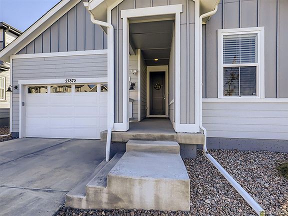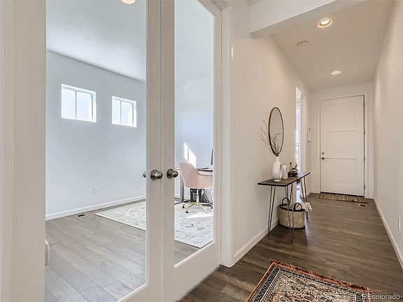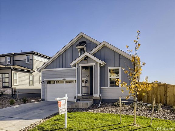 Here is your chance to own an almost new home - just one year old. Seller offering $5000 towards closing costs and prepaids. Great corner location with extended backyard fence to the front end of home. One level living with lots of light and open space. Great room off kitchen is roomy and has great natural light. Custom lighting has been added along with custom window treatments. Backyard has a patio and seller has added a Pergola with lights - gives an enchanting feel while enjoying your outdoor space. Huge master bed with master bath and large walk-in closet. Nice size 2nd bedroom and either 3rd bed or office along with full bath all on the main level. Ample laundry room with window comes includes washer and dryer. Large Mud room off garage and laundry. Some furniture can be negotiated. Patio in back, two car garage, sprinklers front and back, and professional landscaping complete this package. Easy access to I-70, E-470, DIA, Northfield Shopping and Anschutz Medical Center. Parks and trails in the community. A must see!!