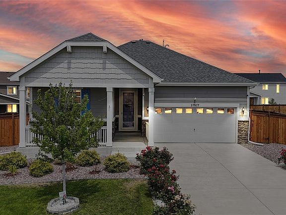 NO NEED TO WAIT FOR NEW CONSTRUCTION! THIS HOME FEELS LIKE A BRAND-NEW BUILD, WITH THE ADDED BONUS OF COMPLETED WINDOW COVERINGS, APPLIANCES AND LANDSCAPING - SAVING YOU TIME AND THOUSANDS OF DOLLARS! Beautiful landscaping and high-end interior finishes make this exceptional home in Sky Ranch truly stand out. Curb appeal shines with a manicured front lawn, accent lighting, and a welcoming covered porch — the perfect spot to enjoy Colorado’s breathtaking sunsets.