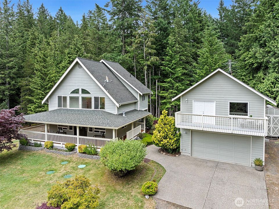 Your Dream Home Awaits on 2.5 Acres in Seabeck! Tucked away, this custom-built, one-owner two-story home with a DADU offers 2,508 sqft of total living space, perfect for comfort and privacy. Generous kitchen, cozy living room & office on the main is ideal for gatherings & everyday living. Retreat to the spacious Primary w/ 5-piece ensuite bathroom & large west-facing windows. Need extra space for guests or multi-generational living? The DADU above the detached 2-car garage includes a private entrance, full kitchen, full bath & balcony w/ sunset views. Step outside & take in the thoughtfully designed landscaped grounds & enjoy the expansive wrap-around covered porch. Ample parking for vehicles, RVs, etc. Don’t let this Seabeck gem slip away!
