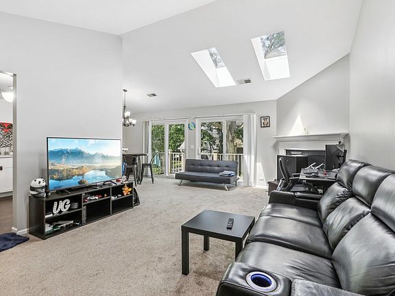 Welcome to the Towne Place Condo community in Schaumburg! Spacious and airy, this 2 Bedroom, 2 Bathroom, upper east-entrance unit has all-new appliances throughout, recently replaced carpet, and has been freshly updated! Step inside the living room with a vaulted ceiling, skylights, fireplace and opens up to the dining room with *NEW* patio doors and windows, replaced 2024. Kitchen has also been refreshed (2023) with *NEW* counters, range, microwave, refrigerator, dishwasher, garbage disposal, water purifier and additional cabinets. 2 bedrooms, includes primary suite with walk-in closet and recently refreshed en-suite bathroom. Convenient, *NEW* in-unit washer and dryer with shelving for storage in maintenance room. Relax on the balcony overlooking the professionally landscaped common areas. Attached 1 Car Garage. Enjoy all of the amenities that this neighborhood has to offer including a pool and clubhouse. Conveniently located near grocery stores, shopping, restaurants, highway, and Metra station. Ready for the next buyer: HVAC tuned up in 2024; newer Water Heater. Could also be a great investment opportunity, with no rental restrictions!