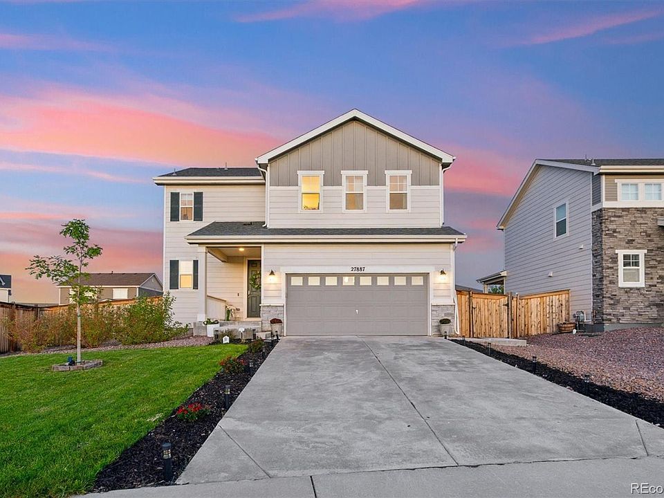 Welcome to this beautifully maintained 3-bedroom, 3-bath home nestled in the serene and sought-after community of Sky Ranch! Featuring a spacious layout and thoughtful upgrades throughout, this home offers comfort, functionality, and charm. Enjoy cooking and entertaining in the upgraded dining area with added cabinetry and extra counter space—perfect for gatherings. The kitchen and bath cabinets have been freshly painted, with updated hardware throughout, giving a modern, refreshed feel. Accent walls in the entryway and primary bathroom add a stylish touch, while a new shower head elevates the en-suite experience. With a mountain view from the primary bedroom, the location can't be beat. Upstairs, the versatile loft features a custom built-in entertainment system, ideal for movie nights or a cozy reading nook. Each bedroom boasts updated light fixtures, adding warmth and character. Outside, the large backyard is a gardener’s dream with raised garden beds, a greenhouse, and a chicken coop—all included! The stamped concrete patio (completed 2 years ago) and recently finished sidewalk path (June 2025) create an inviting outdoor space for relaxation and entertaining. Additional features include a 2-car attached garage, a gas control valve on the water heater replaced 2 years ago, and numerous stylish upgrades throughout. Located in the peaceful Sky Ranch community, you’ll love the nearby parks, taco truck, and charter school right across the street, with a brand-new college preparatory academy currently under construction—offering excellent educational opportunities. Don’t miss the chance to make this beautifully updated home yours!