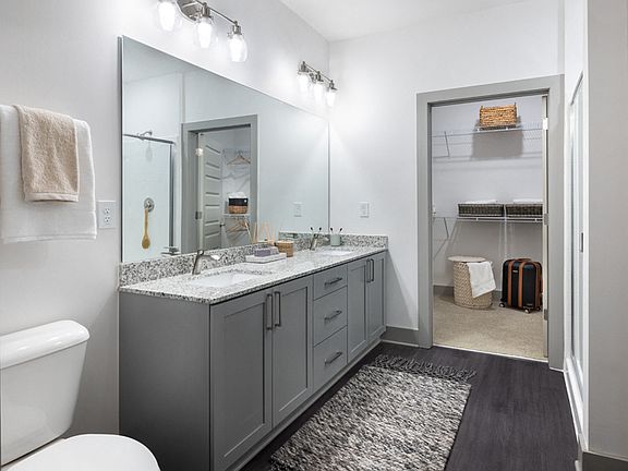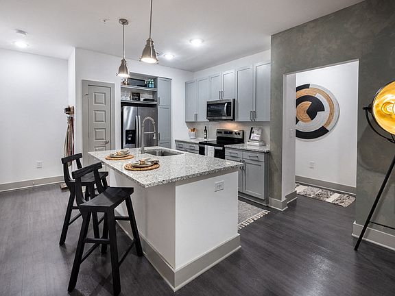 - Exterior features: 1.5 Miles of Nature Trails, Barbecue, Big Paw Pooch Park, Bike-Share Program, Contemporary Pendant Lighting in Kitchen, Courtyard, Designer Cabinetry, Dual Port Electric Charging Stations, Gourmet Kitchens with Stainless Steel Appliances, Package Receiving, Pet Washing Station, Resilient Wood-Style Flooring, Yoga/Spin Room and Fitness-On-Demand