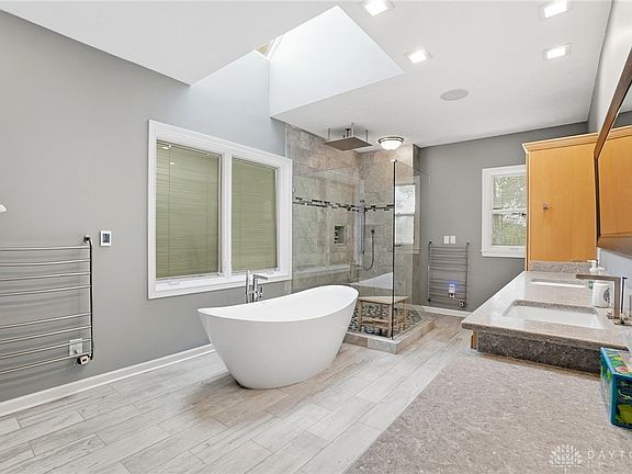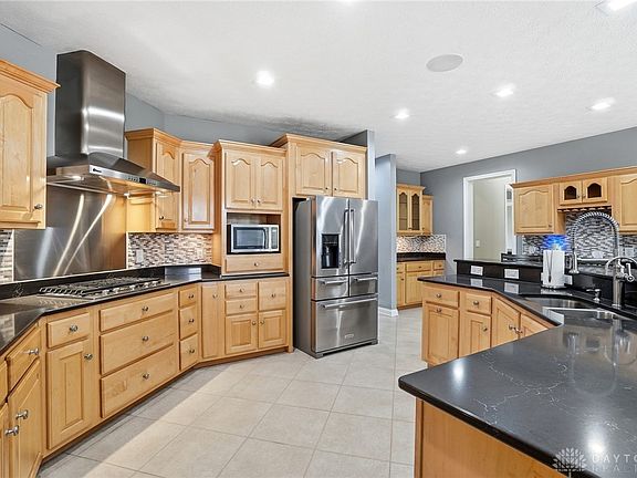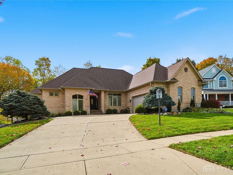 This Remarkable 3 bedroom 4 bath ranch home is located in a beautiful golf course community close to shopping, restaurants, I-675 and Wright Patterson AFB. Upon entering you will be welcomed by a Grand entry with tile floors and an open floor plan. Dining room to the right and living room straight ahead. These rooms feature tall ceilings, new hardwood floors and a stunning see through fireplace surrounded by custom wood in the LR. Heading into your Remodeled Chefs kitchen you will see a Huge island with tons of bar stool seating, custom wood cabinets, quartz countertops, custom range hood, new faucets, New kitchen Aid appliances including a gas stove that can be converted to electric if you wish, a double oven, Coffee Bar, Wine Bar and a HUGE Pantry. Kitchen walks out to your gorgeous deck where you can enjoy your fully fenced in private backyard. The Primary bedroom features New wood flooring and tall ceilings and walks into your custom remodeled ensuite bathroom. Double vanity sinks, gorgeous upgraded shower with center rain shower head, heated tile floors, heated towel racks and a beautiful stand alone soaker tub. Huge walk in closet. Walk Out Lower level features 2 Large bedrooms with a Jack N Jill bathroom, large office space, and storage galore. Also in the LL there is an exceptionally large family room which walks out to your partially covered pavered patio and a great bar area perfect for entertaining and 2 Very Large storage rooms. New ceilings fans throughout, All new counters and sinks, New counter and toilet in powder room, New Whole house generator, New water heater, New Garage doors, New roof, gutters, downspouts 2011, New appliances basement bar, whole house sound system, water filtration system, irrigation system.