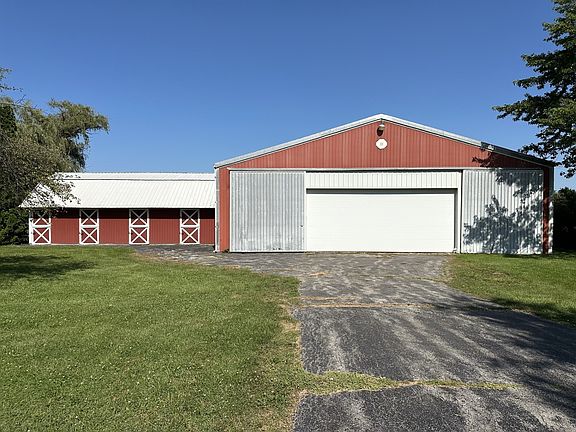 Super property in a great location. Just over 5 acres is fully fenced and is a nice corner parcel. Brick ranch home with an open floor plan with wood beamed cathedral ceilings in living room, kitchen, and dining area. Large brick gas supported fireplace in living room. Beautiful hardwood floors in foyer, kitchen, dining area, family room and hallway. Kitchen has quartz counter tops with breakfast bars on 2 sides, stainless steel appliances, a lot of cabinet space, and large walk in pantry. Off the dining area are french doors that lead to a cozy family room with sliding doors that lead to a large 3 season room. Off the 3 season room there is a screen porch to enjoy the summer nights. All bedrooms are all good size with the cathedral ceilings. There is an office/play area off the second bedroom that gives you room to expand. Full super large basement. There are 2 F/A furnaces, 2 central air units and a battery backup for the sump pump. On the 5 acres there is a detached 2 car brick garage, large pole barn 50' x 80', another section of the barn is 25' x 41' has 4 stalls and shop area. Large barn has a auto garage door opener and the door is 10' high and 23' wide. There is a large open area behind the barn. There is a asphalt pad that was a tennis court at one time but it needs work to get it back to playable times. This property is great and has a lot of room to roam. Come out and take a look you will like it.