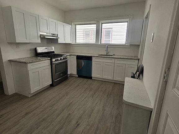 Newly renovated first-floor rental in a 2-family home. There are hardwood floors throughout and new floors in the kitchen. New kitchen cabinets, granite countertops, and stainless steel appliances, including a fridge, gas stove/oven, and dishwasher. New windows will be installed when they arrive. Access to the backyard and ground level/basement from the first floor. The Basement level includes a den (used as bedroom), extra living space, and a half-bathroom with plenty of storage. Parking is available for an extra fee.