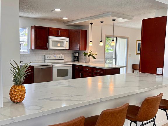 The newly remodeled, open floor plan kitchen Is amazing. There are water views from the kitchen, living room, and dining area. The new remodel with large and open views to the marina, gives this home an indoor / outdoor feeling. There a quarts counter tops, stainless steal refrigerator and dish washer. The vaulted living room ceiling, with high windows brings in all the sunlight to this amazing location in beautiful Hawaii Kai. You can walk to Safeway, Rite-aid, Costco and all kinds of fine dining and fast food restaurants. Only five minutes to Hawaii's treasured cove, Hanauma Bay. Enjoy a scenic eight minute drive to famous bodyboarding Sandy's beach. There are many golf courses and a beautiful driving range within minutes. Hawaii Kai is the perfect place to enjoy a few months in paradise.