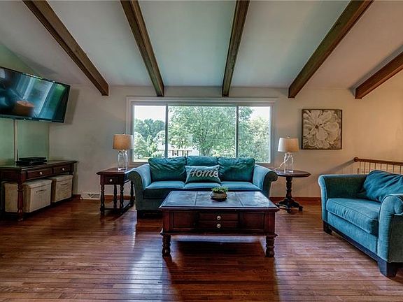 You will immediately feel at home in this stunningly immaculate and updated solid brick home, with five bedrooms and three full baths, once you enter the dramatic newly tiled entry. Beamed Cathedral Ceilings between the living room and the dining room that is open to the kitchen provide a wonderful open floor plan on the upper level along with the warmth of the gleaming hardwood floors that run throughout these three areas and hallway. The beautiul living room also boasts a floor to ceiling log burning brick fireplace. The fabulous updated kitchen comes well equipped with new appliances, plenty of cabinetry, generous counterspace and a center island with seating for three that is convenient for cooking, doing projects,homework, and grabbing a quick meal. French Doors in the dining room lead you to the expansive one year old deck that runs the length of the house providing storage and a carport below. Four spacious bedrooms on the upper level with great closet space outfitted with built in organizers. The master bedroom comfortably fits a king size bed with furniture and has a private full bath. The lower level leads you to a daylight familyroom, nice built in shelving, a massive river rock stone fireplace and is open to a full bathroom and a guest suite. The pristine oversized garage is impressive with built in workbenches, toybox, new insulated fiberglass garage doors with openers.Living and Entertaing will be a delight in this home on a large level corner lot where you can watch your children catch the school bus from your front door. Not only is this home in the award winning Upper St Clair School District but children in this neighborhood attend Streams Elementary School which offer the IB PYP (International Baccalaurreate Primary Years Program). Truly, the Ideal Home...