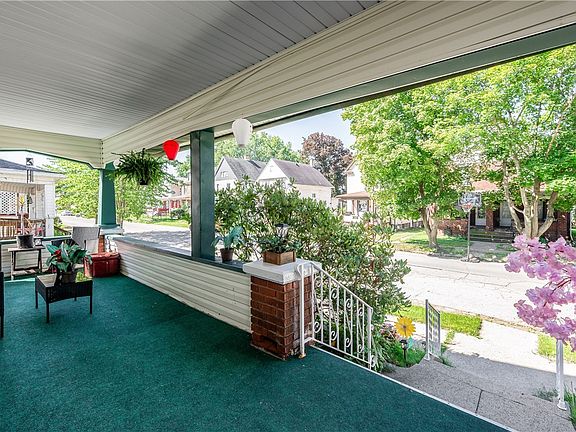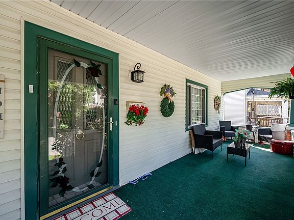 Welcome home to the cheeriest house on the block! This 3 BR 2.5 bath is move in ready! The large, welcoming front porch offers plenty of seating options for entertaining or your morning cup of coffee. The extra-large living room showcases the original hardwood floors and opens to both the dining room and the kitchen. The dining room has an abundance of natural light and a beautiful chandelier ceiling fan. The eat-in kitchen has plenty of space with brand new stainless appliances and a removable island if a more open feel is desired. A new half bath finishes off the main floor. Upstairs you will love the spacious hallway, original built-ins, 3 nicely sized bedrooms and a full updated bathroom. Pull down the steps and check out the finished attic space. The full basement has been partially finished and offers additional living space, laundry area and another full bathroom. A private and cozy fenced in yard, 2 car detached garage with extra off-street parking make this home a must see!