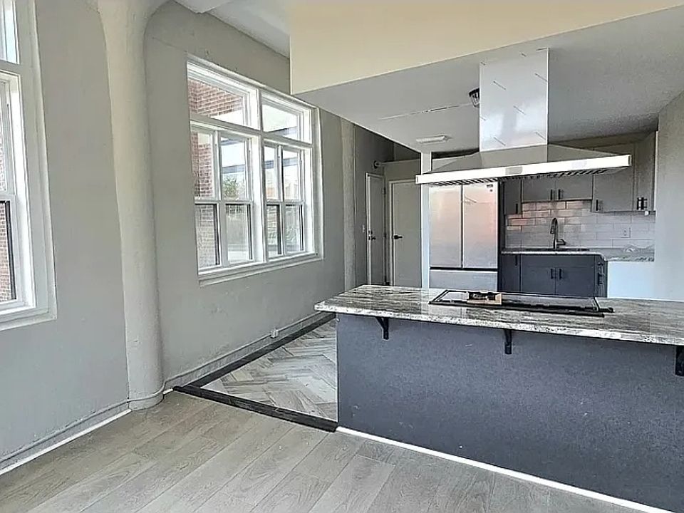 Unit offers exposed brick, 15ft ceilings, industrial sized windows, spacious living room, central air and tons of natural light!