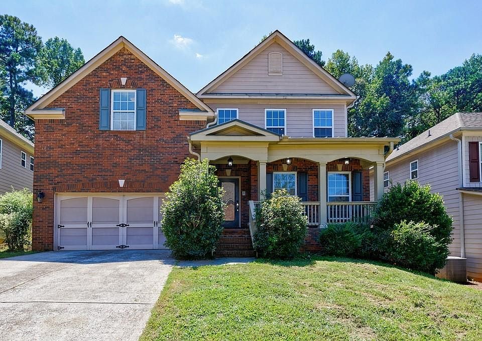 LARGEST SQUARE FOOTAGE ON UPPER TWO LEVELS. Welcome to this palatial looking free standing single family home with 3,542 sq ft on upper two levels. New Paint, New Carpet, New Refrigerator, New Water Heater, One new HVAC Condenser. Surprisingly large floor plan in one of the most desirable school district. Spacious 5 BR/3BA brick front home with relaxing covered front porch, huge back deck and large backyard and large basement. The welcoming 2 story entrance foyer with decorative Chandelier, leads you to a Formal Living Room with French doors which can be used as Bedroom with adjacent full bathroom. Next you will find a spacious Dining Room with trey ceiling and custom moldings. Adjacent to the Dining room is the Large eat in kitchen with gourmet appliances, New Maytag Double Door Refrigerator, Granite Counter Tops, large kitchen island which also serves as a Breakfast table. From the kitchen, you can access the outdoor deck, which overlooks a private and level backyard. The kitchen seamlessly opens to a fireside family room perfect for gatherings and relaxation. Stairs lead to a large landing area which can serve as a Craft area or sitting area with view of the 2-story entry foyer. The spacious master suite is upstairs. It includes space for a sitting area/office desk/exercise machine. A luxurious master bath with separate Tub and Shower, two vanities, A spacious walk-in closet with separate his and her storage areas and dressing room with full size mirror. Unbelievably large 3 kids' bedrooms with one full bathroom upstairs. Spacious Laundry Room on the main level. Large Deck off Kitchen & Patio off of unfinished terrace level. Terrace level walls have been insulated to provide additional work space or exercise room. Approximately 1,600 sq ft basement area ready to be finished. Large level backyard for your family to enjoy. Excellent location close to schools and walking distance to Rock Springs Park. Roof has been changed 7 years ago. With New Exit being made for McGinnis Ferry Rd, This location will have very easy access to and From I-85.