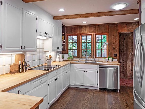 A mid-century treasure on the most coveted block of Covington Road. This exceptional opportunity spans approximately 0.6 acres with majestic redwoods, oaks, and sunswept open space. The circa 1957 all-shingled home has been well-maintained and is ready to move in today while plans for the future unfold. Vintage character abounds with natural brick and barn wood accents, hardwood floors, and a crisp, neutral palette throughout. Formal living and dining rooms plus bright and light kitchen and adjoining family room. Primary bedroom suite preceded by a large office, second bedroom suite, plus two bedrooms, one with direct access to the hall bath. There is also a spacious redwood barn with secondary driveway access, ideal for a car collector or future ADU. Just one mile from the Los Altos Village and with access to top-rated Los Altos schools, this is a rare opportunity in a premier location.