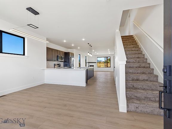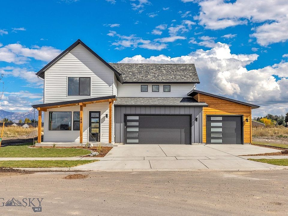 Welcome to this 4-bedroom, 2.5-bath home in Bozeman’s new Sierra Vista subdivision—an extension of the sought-after Woodland Park community. The main level offers a private primary suite with a large bathroom and standalone tub, plus an open-concept living area anchored by a cozy gas fireplace. The kitchen features modern finishes with sleek matte black fixtures. Upstairs are three bedrooms and a versatile bonus area. A compact, combined laundry/mudroom connects to the oversized 3-car garage for everyday convenience. Outside, enjoy the covered patio and a landscaped yard with underground sprinklers (landscaping scheduled for completion 9/5). Located in one of Bozeman’s premier new neighborhoods, this home blends modern design, functionality, and comfort. Taxes are for land only and have not yet been assessed for the home.