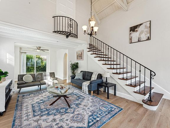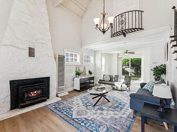 Located in a quiet neighborhood just minutes from the vibrant energy of the Marina and historic Old Town Pittsburg, this home offers a blend of comfort, style, and convenience. Step inside to find vaulted ceilings that create a sense of openness and light, along with a striking floor-to-ceiling brick-enclosed electric fireplace that adds warmth and character. A curved doorway, elegant wrought iron railings, and a charming Juliet balcony provide unique architectural touches throughout. The home features three bedrooms, with two thoughtfully connected—ideal for a nursery, home office, creative studio, or expanded primary suite. The interior boasts fresh paint, luxury vinyl plank flooring, mirrored closet doors, and an indoor laundry area for added ease. Ceiling fans enhance year-round comfort. A spacious 1-car garage offers ample storage, while the generously-sized backyard—featuring lemon trees, rose shrubs, and grapevines—invites outdoor entertaining or quiet evenings under the stars. The front yard is equally inviting, with mature peach trees and a fig tree adding beauty and seasonal bounty. Ideally positioned near Old Town's local dining, breweries, boutiques, and waterfront attractions, this home offers both accessibility and lifestyle.